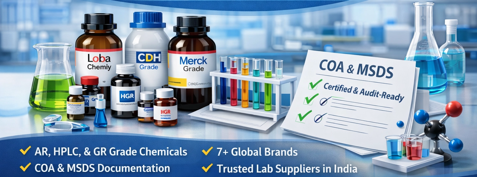 | Loba Chemie | Widest AR/GR/HPLC range in India | Pharma QC, research labs |